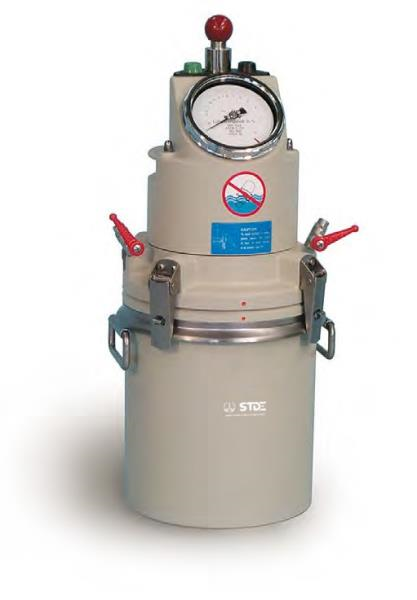 Cet aéromètre intègre un dispositif de pompage manuel lié à un manomètre pour lecture directe du pourcentage d’air occlus.